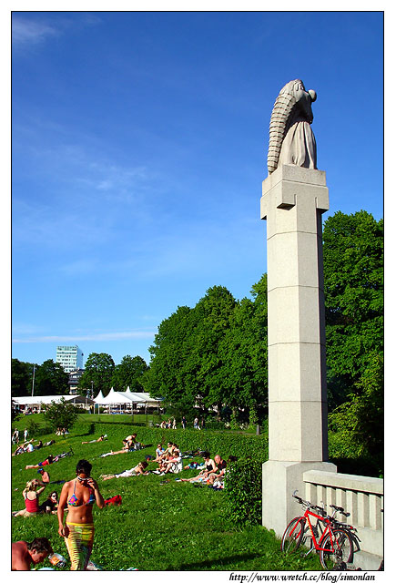 2005年6月19日傍晚,步出國立美術館,下一個目的地要去維吉蘭雕刻公園(Vigelandsparken),這是一個開放式的公園,不收門票,也沒有閉館時間的限制,而且歐洲夏天天黑的時間比較晚,所以我事前在安排行程時,就把這裡做為當天最後一個遊覽的地方。